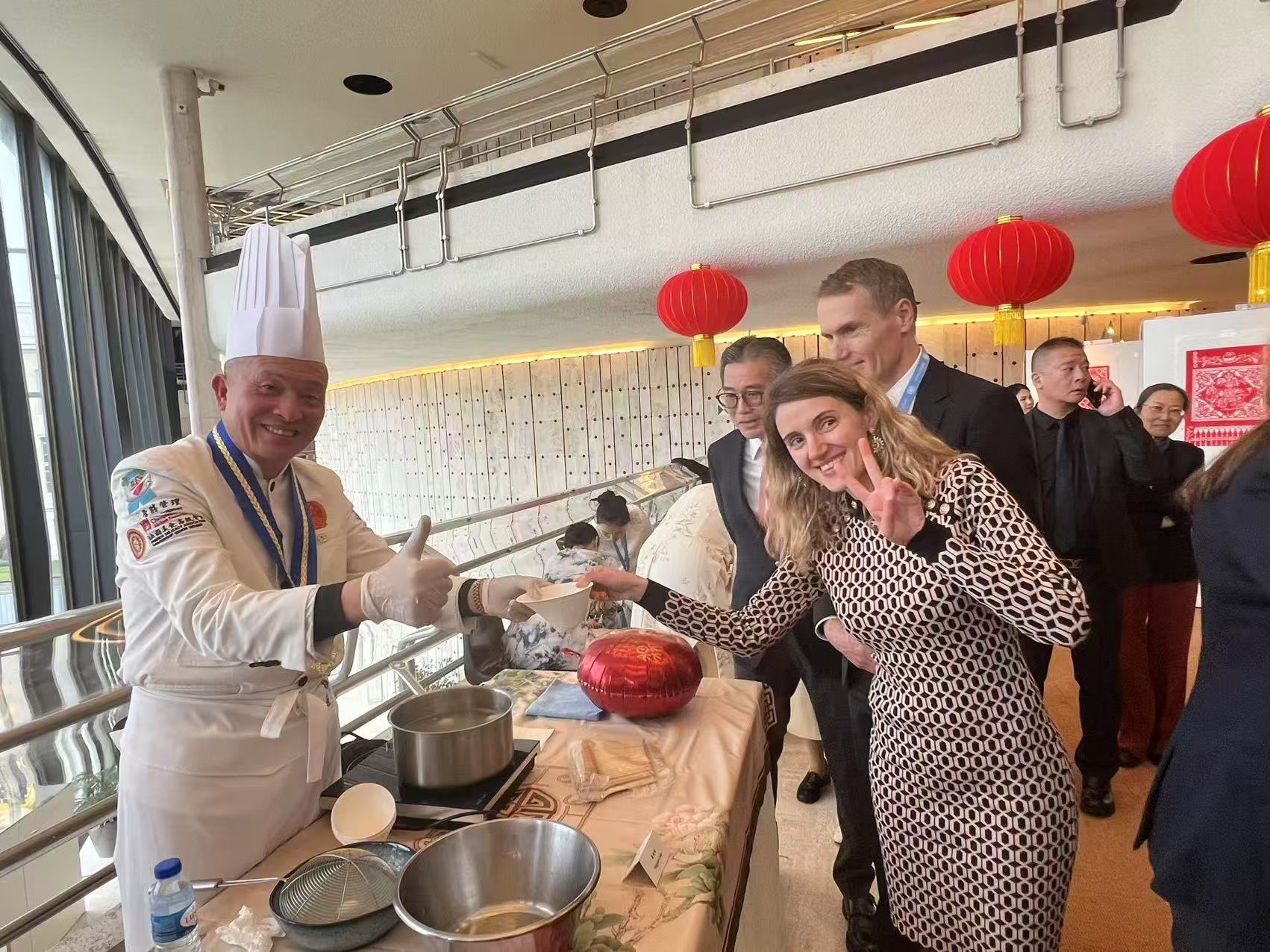 2月12日,中国常驻日内瓦代表团、常驻世贸组织代表团和联合国日内瓦办事处在万国宫共同举办“迎新春”庆祝活动。中国常驻联合国日内瓦办事处和瑞士其他国际组织代表陈旭大使、联合国日内瓦办事处总干事塔季扬娜·瓦罗瓦娅、裁军事务大使沈健以及巴西、印度、哈萨克斯坦、马来西亚、菲律宾、玻利维亚、洪都拉斯、阿曼、冈比亚等50余国常驻代表和国际组织负责人等约500人出席。